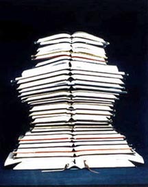 He has published prints of close-up images of authors' ears, and shown art installations that include scrims hung with dust jacket photos of authors' faces, over which he projected film of a hand putting pen to page. He worked with a cigar-box maker to design an elaborate box, complete with a secret compartment, for a 1992 deluxe limited edition of a Joseph Cornell book for Grassfield Press.