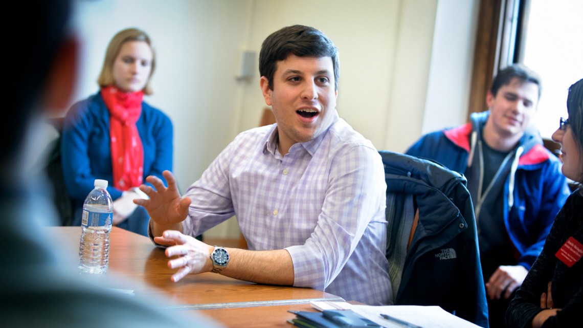Jordan Fabian ’09 talks to Cornell students during a visit to campus.