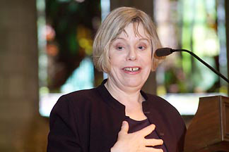 Armstrong began by recounting her experiences as a young child in the Catholic church, where she had to memorize a very specific definition of God. Pointing out that "defining" something literally means placing limits on it, she explained to the audience that she now believes God to be indefinable. "God, as God is in God's self, will never be known to us," she said. Instead, she believes that each person can experience God in his or her own way, without ever knowing all of Him.