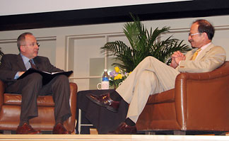 Varmus added that the Bush administration has introduced "perversions of advising and policy-making" by questioning the political leanings of potential advisers, appointing people with "skeptical training" to important positions and even altering scientific documents for political purposes. However, the problems in America are not created by a single entity, he said, but reflect a fissure in society that includes the blurring of boundaries between religion and state, and "the failure to recognize science as a foundation of our social and economic well-being and our ambivalent attitudes toward the rest of the world."