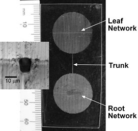 Xylem-like capillaries are relatively easy to create by microfabrication, but the researchers' choice of a material to act as membranes in the leaf and root to separate the liquid from the atmosphere and the soil was much trickier.
