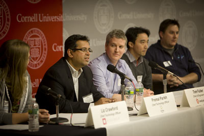 This panel discussion was sponsored by the New York City Economic Development Corp. and was part of the inaugural Cornell Startup Career Fair, which featured more than 40 startups and was heavily attended by students. The Cornell Startup Career Fair was sponsored by Entrepreneurship@Cornell and the Kessler Fellows Program.