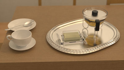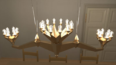 Together with improvements developed by Jakob and Marschner, this algorithm manages the complex behavior of light traveling through glossy materials such as brushed metal or glass. As examples, Jakob offers images of a brass chandelier with many bulbs, glassware on a serving tray illuminated by such a chandelier and architectural scenes lit by sunlight coming through windows.