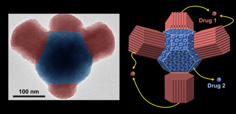 Spongelike nanoparticles whose pores can be filled with drugs offer the promise of drug delivery to specific targets in the body, avoiding unpleasant side effects. Cornell researchers have now created nanoparticles with separate compartments that could carry two or more different drugs to the same location, with precise control over the amounts. The technology might also be applied to catalysts used to enhance chemical reactions, which are sometimes formed into porous nanoparticles to expose more surface area; compartmented particles could allow two or more catalysts to work in sequence.
