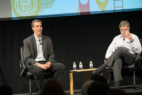 The event closed with a conversation on Cornell NYC Tech with Dean and Vice Provost Dan Huttenlocher and Ken Goldman ’71, CFO of Yahoo!. In discussing the need and excitement around Cornell Tech, Goldman said: “There is a land grab for computer science professionals going on,” with Huttenlocher agreeing that “the discipline is critical for so many industries today.”