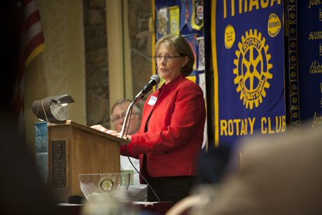 Yet, at an Ithaca Rotary lunch meeting May 8, Mabry entertained her audience of more than 100 with facts, figures and tales of behind-the-scenes challenges that she could not plan for.
