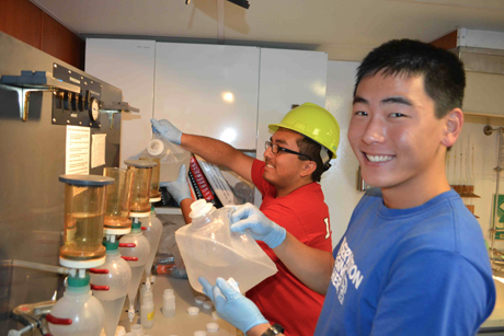 Rudstam and postdoc Milan Riha, research staff, one graduate student and three undergraduates took part in a weeklong sampling cruise of Lake Ontario in July. The undergraduates had been hired as summer interns at the CBFS at Shackelton Point, Bridgeport, N.Y., on Oneida Lake. Watkins and other staff sampled all the Great Lakes during monthlong cruises in April and August.