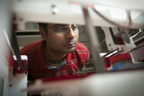 In the case of the speaker, Kiran used one of the lab’s Fab@Homes, a customizable research printer originally developed by Lipson and former graduate student and lab member Evan Malone, that allows scientists to tinker with different cartridges, control software and other parameters. For the conductor, Kiran used a silver ink. For the magnet, he employed the help of Samanvaya Srivastava, graduate student in chemical and biomolecular engineering, to come up with a viscous blend of strontium ferrite.