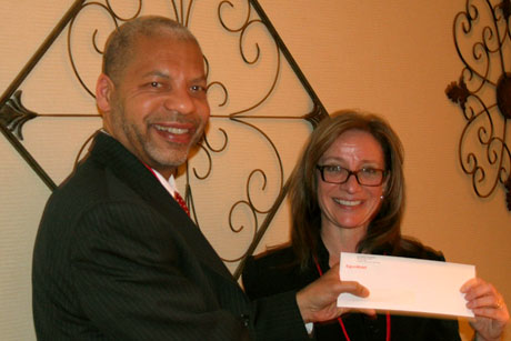 Elissa Sterry ’79, M.Eng. ’80, vice president of the intermediates unit of ExxonMobil Chemical, presented the check to Lance Collins, dean of the College of Engineering, during the Engineering College Council dinner April 3.