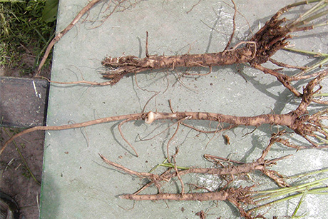 In the alfalfa-breeding process, the researchers started with 16 alfalfa populations that they later whittled down to seven. Bred from an older variety, Seedway 9558 SBR went through seven breeding cycles. Each summer, plants were planted in deep trashcans in a greenhouse and similarly inoculated with alfalfa snout beetle eggs. After up to six weeks, Crawford selected up to 125 of the largest plants with the least root damage out of 2,000-3,000 plants per population. These were then replanted, cross-pollinated so they produced seed, and the seeds were replanted the following year to build resistance levels in each population.