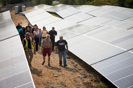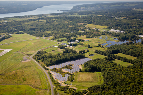 The Snyder Road Solar Farm is located about two miles from campus at a site not slated for other uses. Cornell and NYSEG are using “remote net metering” to credit the university for electricity generated by the solar facility.