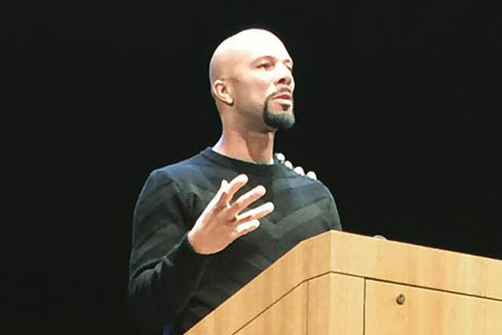 Common (born Lonnie Rashid Lynn) opened his speech with a two-minute freestyle rap, giving shout-outs to audience members and demonstrating his talent as a lyricist.
