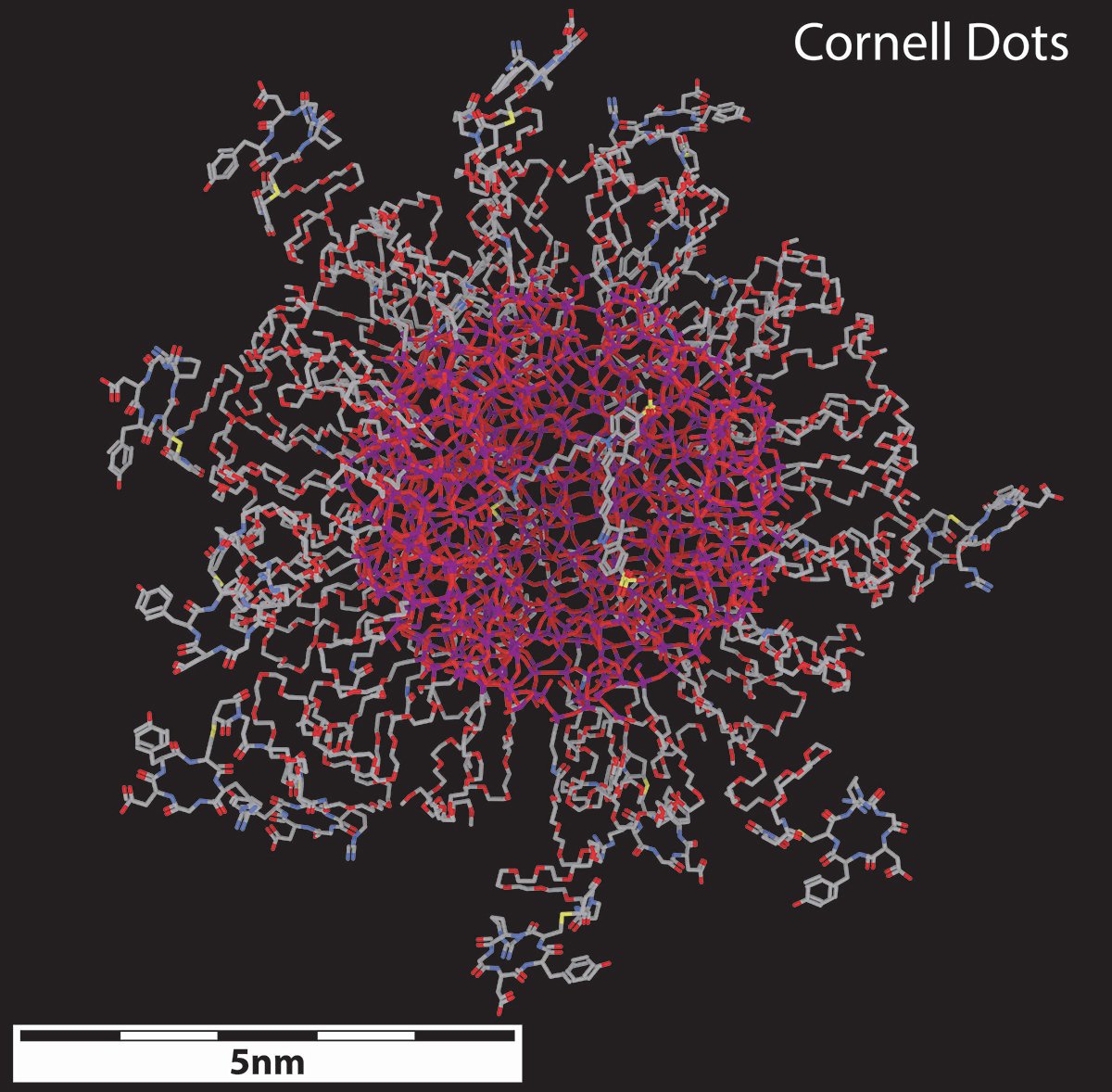 The MSKCC-Cornell Center is based on development and translation of Cornell dots, or C dots – silica-organic hybrid nanoparticles smaller than 10 nanometers in size designed to either adhere to and light up cancer cells or quickly leave the body. C dots are being tested in human clinical trials, opening the door to transformative research and development of new clinically promising classes of nanoparticles and their applications in cancer diagnostics, surgery and targeted drug delivery.