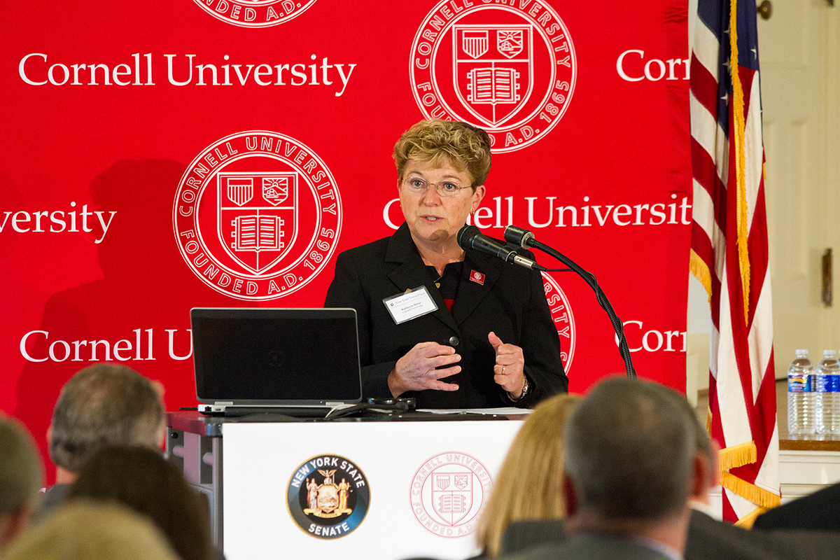 Kathryn J. Boor, the Ronald P. Lynch Dean of CALS, noted that food and agriculture contribute roughly $96 billion to the New York economy each year. That impact is felt through production, processing, value-added foods and beverages and by contributing to the profitability of affiliated industries, she said.