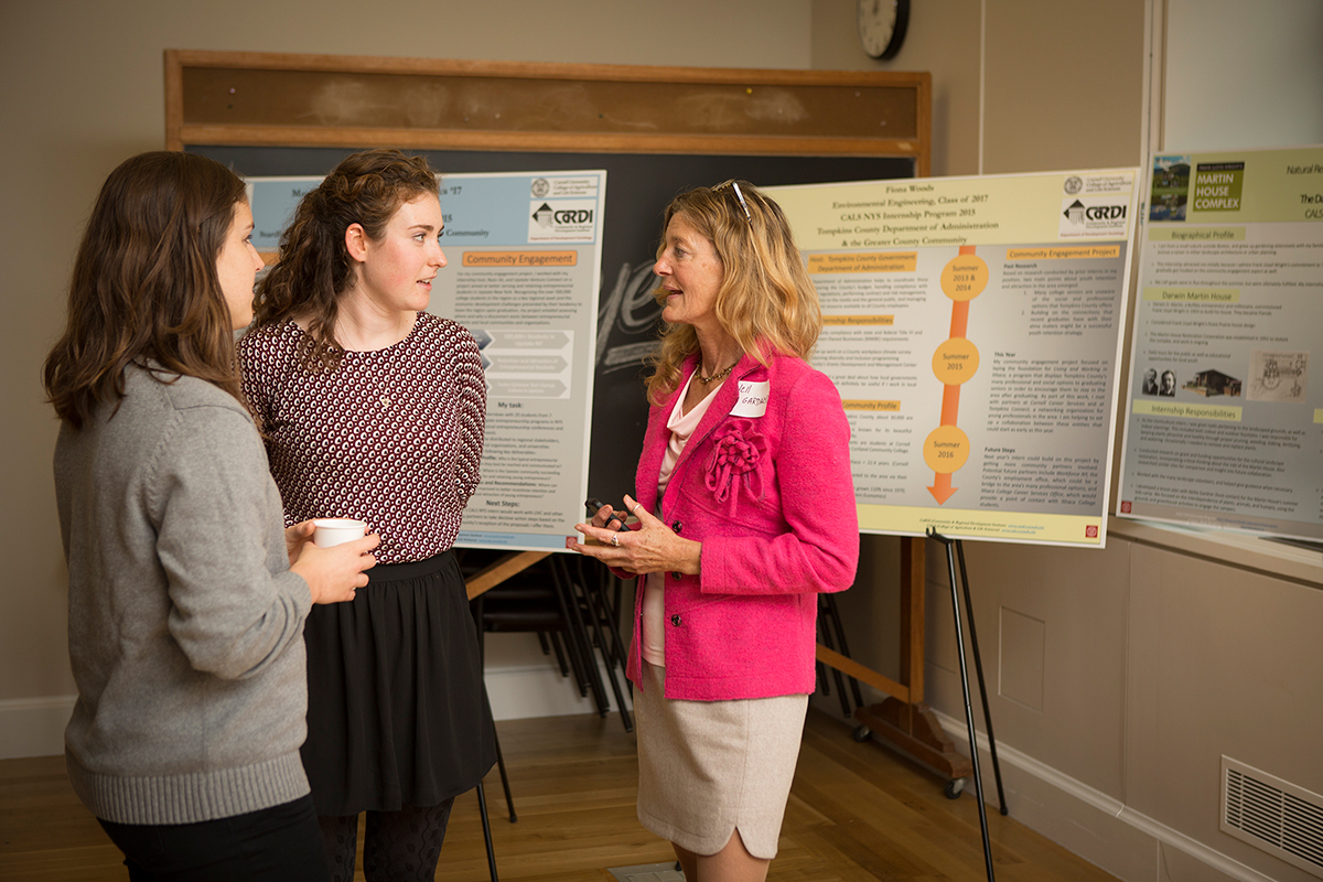 Among the 18 students working with the Community and Regional Development Institute (CaRDI), eight were placed with the CALS New York State internship program, which is designed to provide career-related experience and foster civic engagement. The program embodies Cornell’s commitment to strengthening New York’s competitive edge and enhancing community vitality.