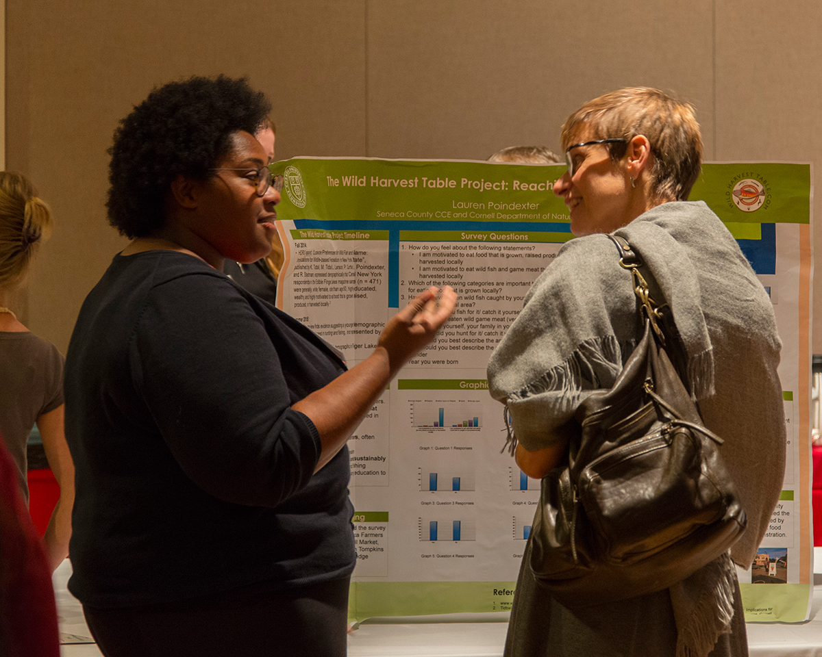 At the CALS New York State internship forum Sept. 30, students gave presentations of their wide range of summer work. Kendra Ellis ’16 worked as an agricultural production analyst and field hand intern at Hudson Valley Farm Hub in Ulster County, researching migrant farmworkers – mostly Latino immigrants – and their opportunities for integration into the regional community. Kevin Kreher ’16 worked with the CCE Genesee County to survey the use of precision agriculture technology, such as GPS and drones, to manage crops. Adeline Bakewell ’16 used her skills in natural resources, plant science and landscape architecture to enhance the grounds at Buffalo’s Darwin Martin House, a Frank Lloyd Wright design, built in 1903.