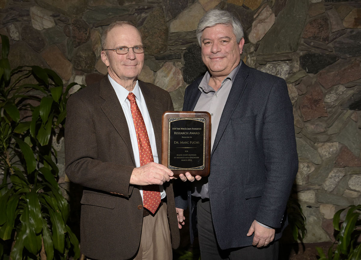Marc Fuchs received the 2016 Research Award from the New York Wine & Grape Foundation on March 3 for his work protecting the state’s grape industry.