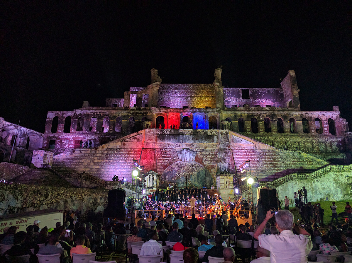 Funded by the Haitian government, the United States Embassy, the Haitian national heritage institute ISPAN and the community-building foundation FOKAL, with support from the Haiti Bureau of UNESCO, the concert’s purpose was to “celebrate life on the anniversary of the earthquake, promote peace and reconciliation in Haiti after a contentious presidential election, and draw attention to efforts to preserve and refurbish Sans-Souci and the Citadelle Laferrière,” Spinazzola said.