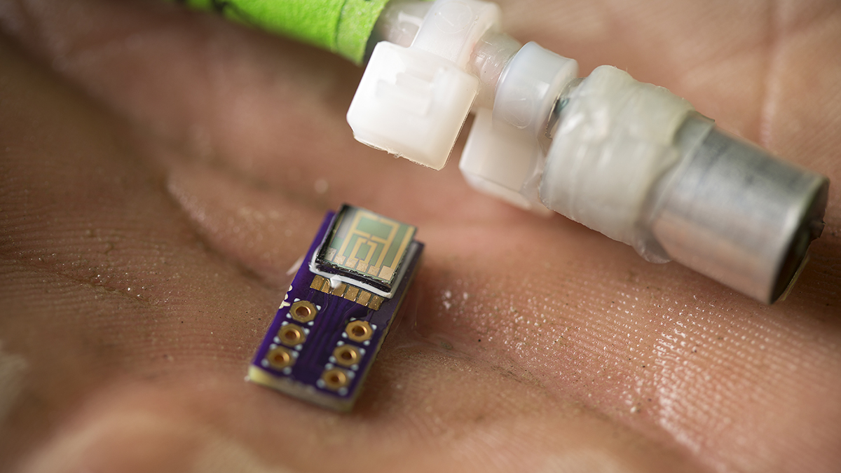 Over the past three years, the Cornell team developed a prototype of a commercial water sensor with a fingertip-sized chip and a probe for inserting into plant stems.