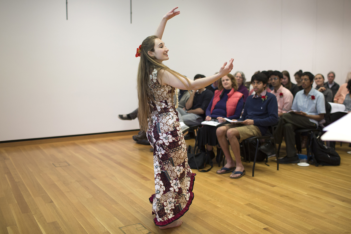ILR student Sophia Lokelani Boucher ’19 performed a chant, hula dance and poem in Hawaiian in honor of Earth Day. “The poem is written in the context of Hawaii but applies to all of us,” she said. “Take care of the land, take care of each other, take care of yourself.”