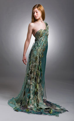It was imagery of the Garden of Eden that inspired apparel design student Jessie Fair '09 to create a flowing, asymmetrical gown of silk dupioni and organza that evokes a lush garden.