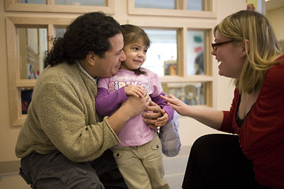 Now in its second week, the adjustment is going well, according to Sophia's dad, Kris Escalante. When she was in the toddler class, Sophia used to run to join her teacher and class, and now she holds back a little. To help Sophia adjust to the new, larger group, Escalante lingers a bit when he drops her off in the mornings.