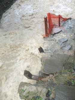 The repair project will be integrated into Cornell's ongoing trail restoration, which will probably be completed in fall 2013. In the meantime, Bittner reminded the public to abide by "closed trail" signs, not only because of unsafe trail conditions but also because that portion of the Cascadilla Gorge trail is now a construction site. (However, the trail is open between Lynn Street and Stewart Avenue, and upstream of College Avenue.)