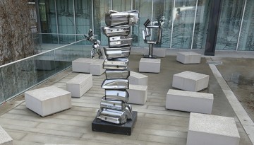 The Jason and Clara Seley Sculpture Court features three works crafted from chrome automobile bumpers by Jason Seley '40, a former art professor and AAP dean.