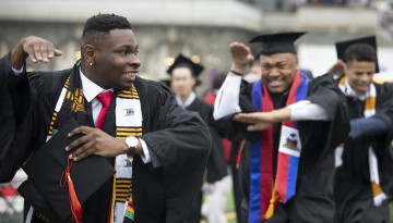 Cornell held its 150th Commencement ceremony for 5,500 seniors and advanced degree recipients May 27 in Schoellkopf Stadium, during a rainstorm that dampened none of the celebratory event’s spirit for graduates or family members.
