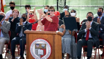 The excitement was palpable as thousands of Cornellians gathered in person at Schoellkopf Field for New Student Convocation Aug. 25. President Martha E. Pollack shared two lessons: Respect knowledge and be kind.