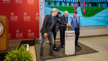 Cornell leaders, donors, faculty and students gathered Oct. 24 to officially dedicate the new building for the Cornell Ann S. Bowers College of Computing and Information Science. The building opened in August, on time and on schedule.