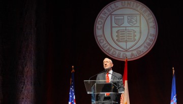 We are living in “an enormously consequential time for our university, for all of higher education and for our country,” President Michael I. Kotlikoff said in the annual State of the University address, Oct. 24 in Call Auditorium.