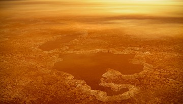 Lakes of liquid methane that pock the landscape on Saturn’s moon Titan were likely formed by explosive, pressurized nitrogen just under the moon’s crusty surface.