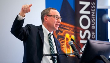 Two deans and three faculty members from the Cornell SC Johnson College of Business offered a multilayered discussion on business and technology in the age of rising inequality March 18 in Warren Hall.
