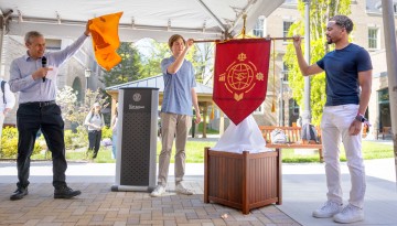 The ceremonial banner's new design reflects the ILR School's contemporary breadth, which includes labor and labor relations, human resources, business, law, government and social justice, while staying true to the school's founding principles.