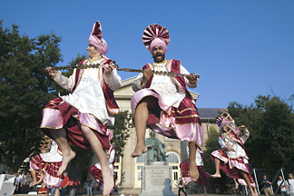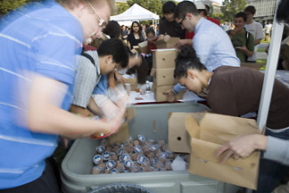 The jovial mood that inspired the impromptu dinner performance was a fitting end to a day of light-hearted festivities honoring Skorton, many taking place in the afternoon on the Arts Quad, immediately following the austere pomp and circumstance of the inaugural ceremony. Many students, faculty, staff and others who had attended the ceremony lingered afterward to hear the music, watch the dancers and sample the food, which included a brand-new flavor of ice cream, Banana Berry Skorton.
