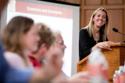 The university would have to analyze the campuswide demand for conference services to determine if it could afford to build and sustain a conference center, Page said in answer to an audience member's question. "I think there's a need; it's just having the dollars to be able to do it," she said.
