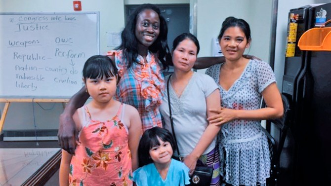 Martha Mendy (ILR ’19), top left, taught English as a second language and citizenship classes through her High Road placement at Jericho Road Community Health Center.