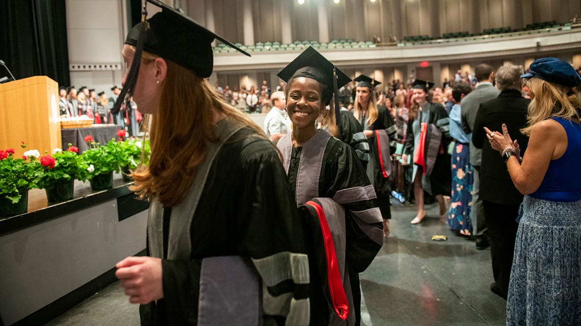 Students take the stage during the College of Veterinary Medicine Class of 2019 hooding ceremony.