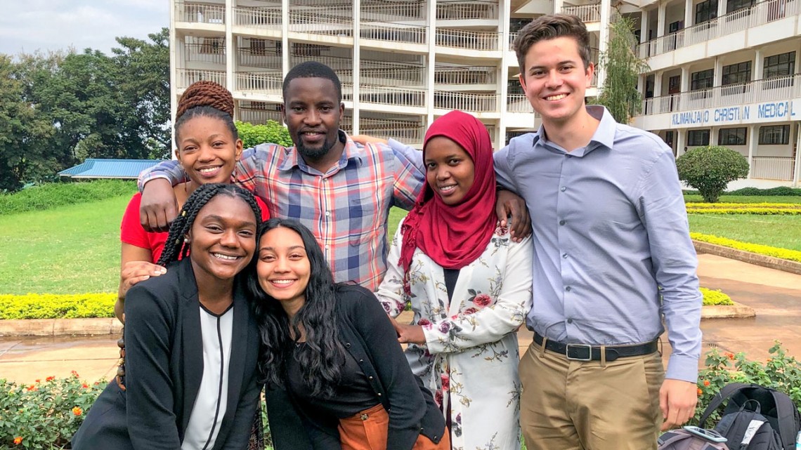 Aneri Patel ’21, front right, with her research group of Cornell and Kilimanjaro Christian Medical University College students during the summer 2019 Global Health Program in Tanzania.