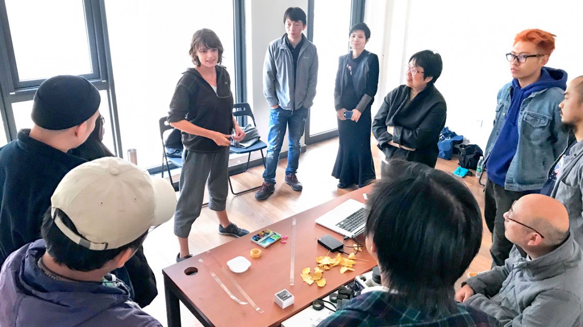 Lisa Malloy ’17 leading a session of a 16mm filmmaking workshop in Songzhuang, Beijing.