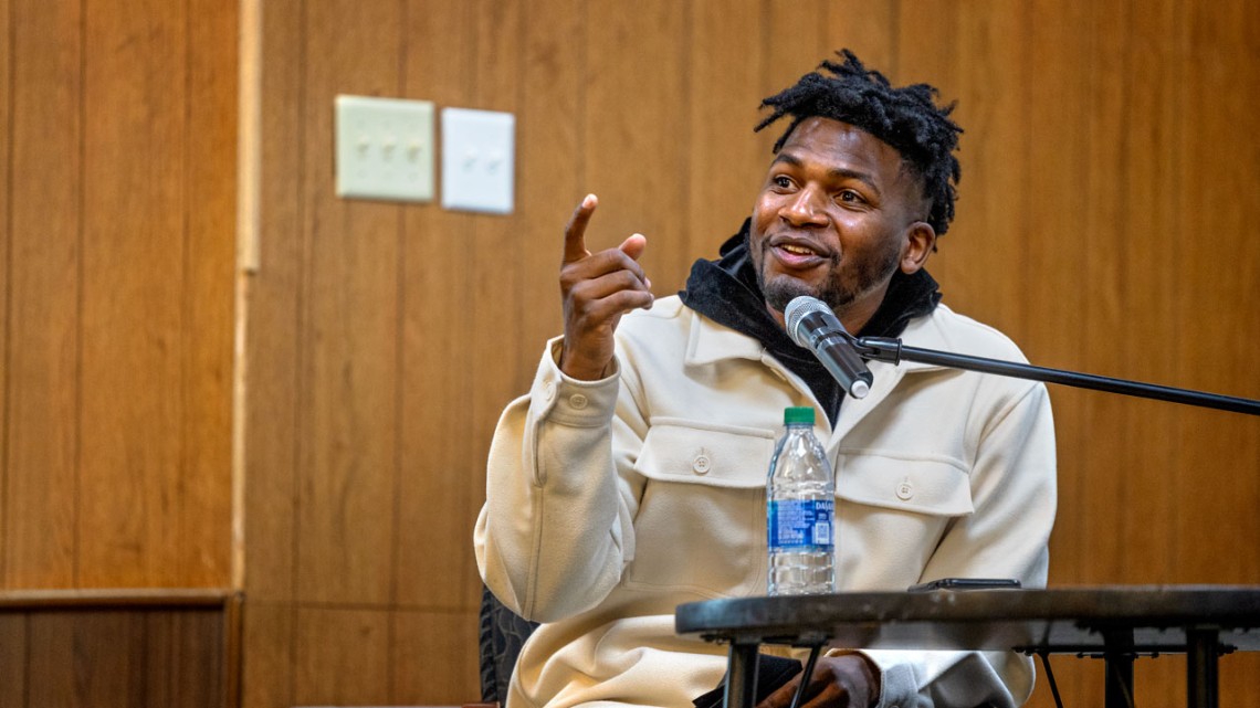 Author Danté Stewart, speaking at Calvary Baptist Church in Ithaca on Feb. 3 as part of Cornell’s Martin Luther King Jr. Commemoration.