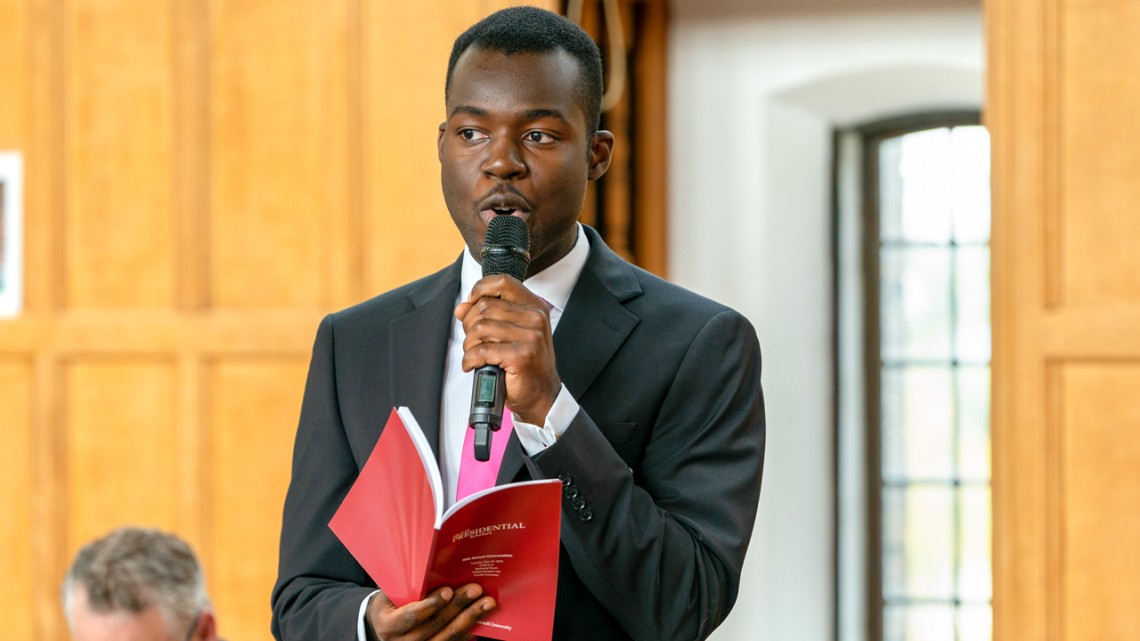 Abraham Sinfort ’23 speaks May 23 at the 35th Merrill Presidential Scholars ceremony.