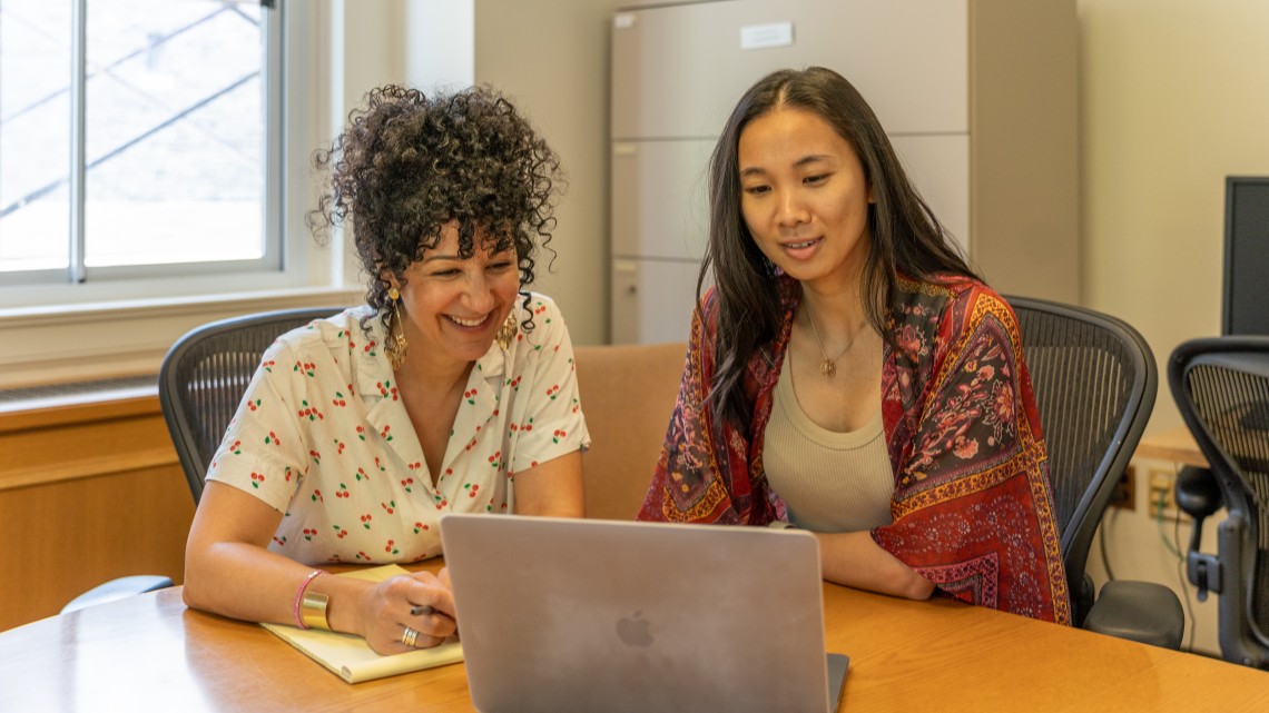 Pictured above (left to right): Professor Rachel T. Goldberg, and Sophia Chung ’24 discussing Sophia’s appellate brief arguing an issue of first impression regarding a defendant being forced to wear prison clothes during his trial.