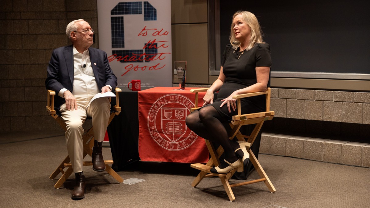 In a conversation with Cornell President Michael I. Kotlikoff, Pambianchi reflected on her more than 30 years of experience as a human resources officer at some of the world’s most well-known companies, including PepsiCo, Corning Inc., Verizon and Intel, where she has worked since August 2021. She will leave Intel at the end of this month to join heavy equipment manufacturer Caterpillar as its chief human resources officer.