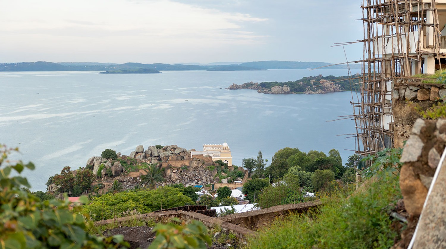 A mosque nestles in the rocks by Lake Victoria in Mwanza, Tanzania.