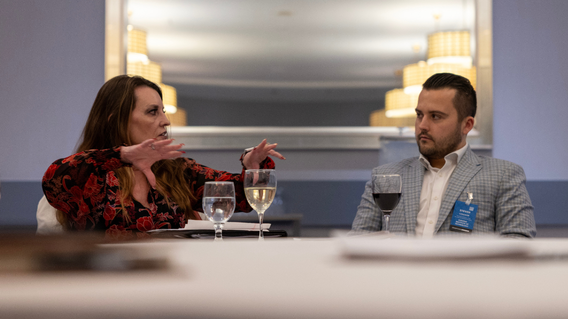 Sun Holdings’ VP of Human Resources Laura McLand (left) conducts an Executive HR Roundtable at the 2025 Employee Benefits & Total Rewards Summit in Las Colinas, Texas.