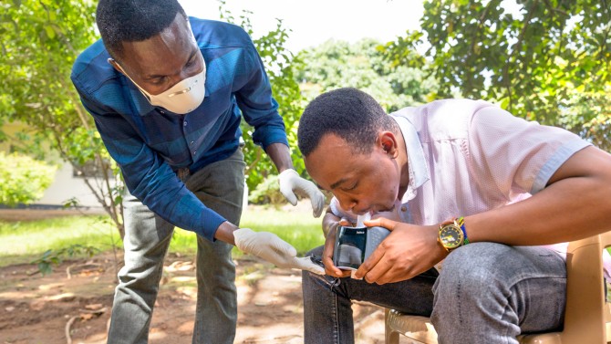 Ng’Habi took a huge breath, filling his lungs to capacity. Then he blew as hard as he could into a tube attached to a small box-like device, and inhaled again to capacity, as his colleague, Anthony Kaji, coached him. “Blow, blow, blow,” Kaji said.