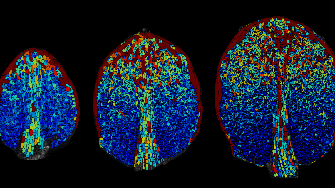 Changes to cell sizes and locations in the same Arabidopsis leaf at different points of growth.