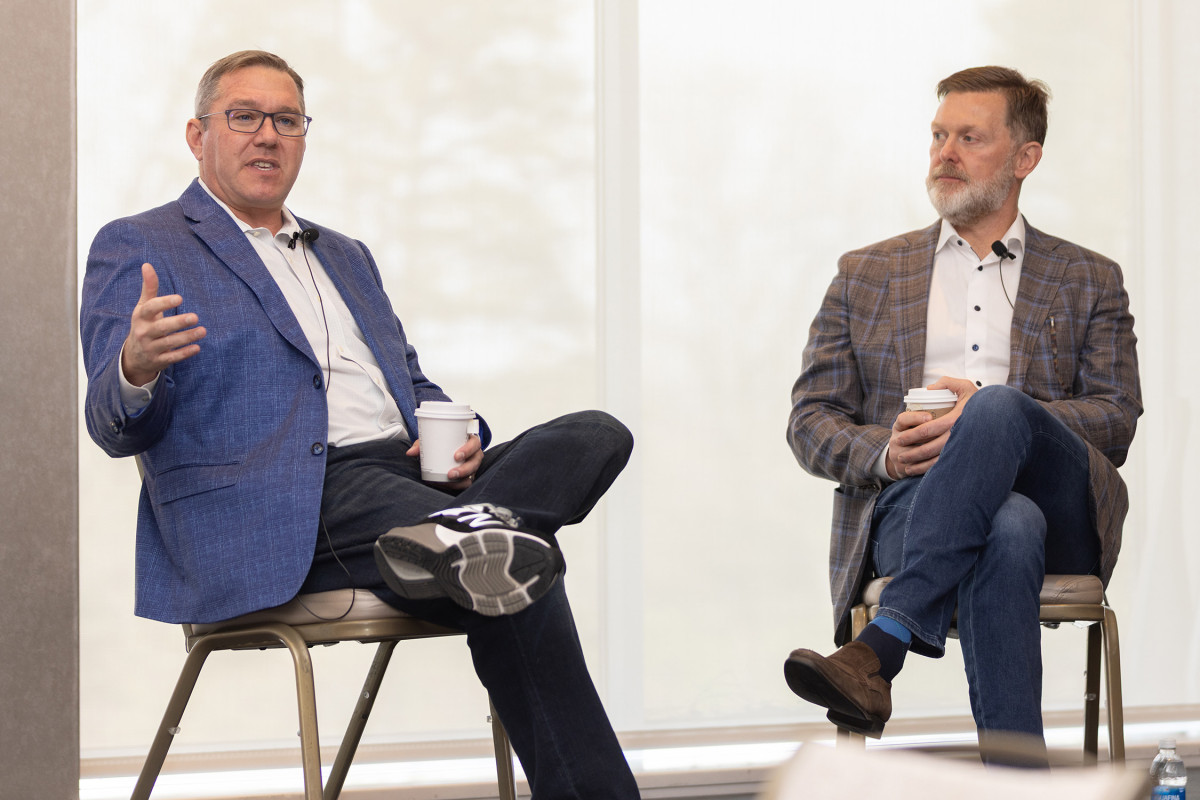 Cane joined Tim Barry ’93, chair and CEO of VillageMD and 2024 Cornell Entrepreneur of the Year, for a chat as they celebrated Cane’s honor this year. Many of Cane’s classmates — some who joined him as business partners – also came to Cornell for the event.